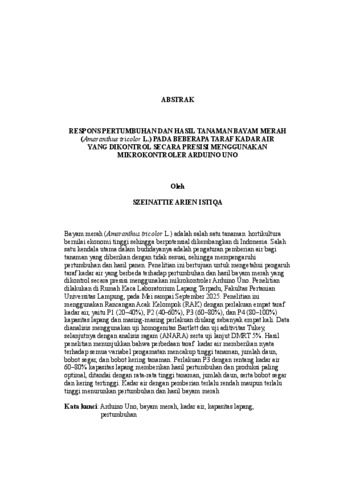 Szeinattie , Arien Istiqa (2026) Respons Pertumbuhan dan Hasil Tanaman Bayam Merah (Amaranthus tricolor L.) pada Beberapa Taraf Kadar Air yang Dikontrol secara Presisi menggunakan Mikrokontroler Arduino Uno. FAKULTAS PERTANIAN, UNIVERSITAS LAMPUNG.