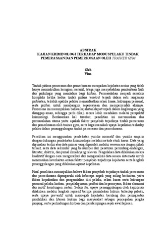 KAJIAN KRIMINOLOGI TERHADAP MODUS PELAKU TINDAK PEMERASAAN DAN PEMERKOSAAN OLEH TRAINER GYM