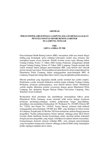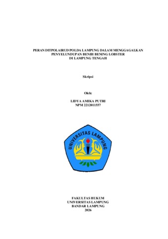 LIDYA AMIKA , PUTRI (2026) PERAN DITPOLAIRUD POLDA LAMPUNG DALAM MENGGAGALKAN PENYELUNDUPAN BENIH BENING LOBSTER DI LAMPUNG TENGAH. FAKULTAS HUKUM, UNIVERSITAS LAMPUNG.