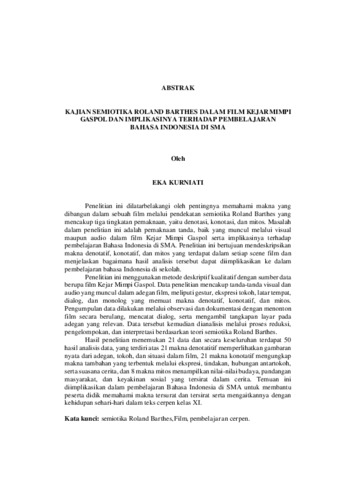 Penelitian ini dilatarbelakangi oleh pentingnya memahami makna yang dibangun dalam sebuah film melalui pendekatan semiotika Roland Barthes yang mencakup tiga tingkatan pemaknaan, yaitu denotasi, konotasi, dan mitos. Masalah dalam penelitian ini adalah pemaknaan tanda, baik yang muncul melalui visual maupun audio dalam film Kejar Mimpi Gaspol serta implikasinya terhadap pembelajaran Bahasa Indonesia di SMA. Penelitian ini bertujuan mendeskripsikan makna denotatif, konotatif, dan mitos yang terdapat dalam setiap scene film dan menjelaskan bagaimana hasil analisis tersebut dapat diimplikasikan ke dalam pembelajaran bahasa Indonesia di sekolah. Penelitian ini menggunakan metode deskriptif kualitatif dengan sumber data berupa film Kejar Mimpi Gaspol. Data penelitian mencakup tanda-tanda visual dan audio yang muncul dalam adegan film, meliputi gestur, ekspresi tokoh, latar tempat, dialog, dan monolog yang memuat makna denotatif, konotatif, dan mitos. Pengumpulan data dilakukan melalui observasi dan dokumentasi dengan menonton film secara berulang, mencatat dialog, serta mengambil tangkapan layar pada adegan yang relevan. Data tersebut kemudian dianalisis melalui proses reduksi, pengelompokan, dan interpretasi berdasarkan teori semiotika Roland Barthes. Hasil penelitian menemukan 21 data dan secara keseluruhan terdapat 50 hasil analisis data, yang terdiri atas 21 makna denotatitif memperlihatkan gambaran nyata dari adegan, tokoh, dan situasi dalam film, 21 makna konotatif mengungkap makna tambahan yang terbentuk melalui ekspresi, tindakan, hubungan antartokoh, serta suasana cerita, dan 8 makna mitos menampilkan nilai-nilai budaya, pandangan masyarakat, dan keyakinan sosial yang tersirat dalam cerita. Temuan ini diimplikasikan dalam pembelajaran Bahasa Indonesia di SMA untuk membantu peserta didik memahami makna tersurat dan tersirat serta mengaitkannya dengan kehidupan sehari-hari dalam teks cerpen kelas XI. Kata kunci: semiotika Roland Barthes,Film, pembelajaran cerpen. This research is motivated by the importance of understanding the meanings constructed in a film through Roland Barthes' semiotic approach, which encompasses three levels of meaning: denotation, connotation, and myth. The problem in this research is the interpretation of signs, both visual and audio, in the film "Kejar Mimpi Gaspol" (Chasing the Dream of Gaspol), and their implications for Indonesian language learning in high schools. This study aims to describe the denotative, connotative, and mythical meanings contained in each scene in the film and to explain how the results of this analysis can be applied to Indonesian language learning in schools. This study uses a qualitative descriptive method with the data source being the film "Kejar Mimpi Gaspol." The research data includes visual and audio signs appearing in the film's scenes, including gestures, character expressions, settings, dialogues, and monologues containing denotative, connotative, and mythical meanings. Data collection was conducted through observation and documentation by repeatedly watching the film, recording dialogue, and taking screenshots of relevant scenes. The data were then analyzed through a process of reduction, grouping, and interpretation based on Roland Barthes's semiotic theory. The study yielded 21 data points, resulting in a total of 50 data analysis results. These data consisted of 21 denotative meanings, which depict concrete depictions of scenes, characters, and situations in the film; 21 connotative meanings, which reveal additional meanings formed through expressions, actions, relationships between characters, and the story's atmosphere; and 8 mythical meanings, which convey cultural values, societal views, and social beliefs implicit in the story. These findings are applied to Indonesian language learning in high school to help students understand explicit and implicit meanings and relate them to everyday life in eleventh-grade short stories. Keywords: Roland Barthes's semiotics, film, short story learning.