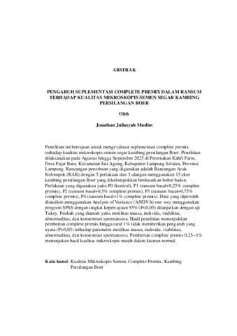Jonathan Juliasyah , Muslim (2026) PENGARUH SUPLEMENTASI COMPLETE PREMIX DALAM RANSUM TERHADAP KUALITAS MIKROSKOPIS SEMEN SEGAR KAMBING PERSILANGAN BOER. FAKULTAS PERTANIAN, UNIVERSITAS LAMPUNG.