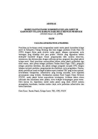 CALLISA , ARSADIANIS KANSARIMA (2026) MODEL RANTAI PASOK KOMODITAS KELAPA SAWIT DI KABUPATEN TULANG BAWANG DARI HULU MENUJU PRODUKSI CRUDE PALM OIL (CPO). FAKULTAS ILMU SOSIAL DAN ILMU POLITIK, UNIVERSITAS LAMPUNG.