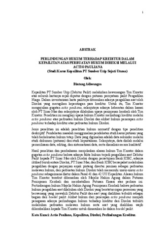 Bintang, Adiwangsa (2026) PERLINDUNGAN HUKUM TERHADAP KREDITUR DALAM KEPAILITAN ATAS PERBUATAN HUKUM DIREKSI MELALUI ACTIO PAULIANA (Studi Kasus Kepailitan PT Sumber Urip Sejati Utama). FAKULTAS HUKUM, UNIVERSITAS LAMPUNG.