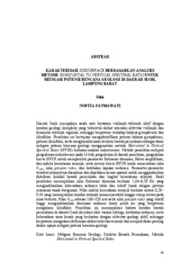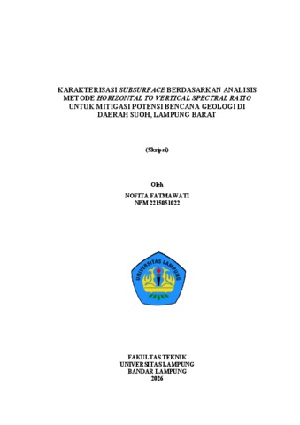 NOFITA, FATMAWATI (2026) KARAKTERISASI SUBSURFACE BERDASARKAN ANALISIS METODE HORIZONTAL TO VERTICAL SPECTRAL RATIO UNTUK MITIGASI POTENSI BENCANA GEOLOGI DI DAERAH SUOH, LAMPUNG BARAT. FAKULTAS TEKNIK, UNIVERSITAS LAMPUNG.