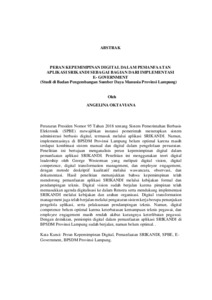 PERAN KEPEMIMPINAN DIGITAL DALAM PEMANFAATAN APLIKASI SRIKANDI SEBAGAI BAGIAN DARI IMPLEMENTASI E- GOVERNMENT (Studi di Badan Pengembangan Sumber Daya Manusia Provinsi Lampung).
