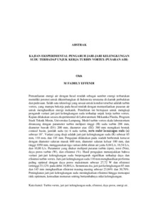 KAJIAN EKSPERIMENTAL PENGARUH JARI-JARI KELENGKUNGAN SUDU TERHADAP UNJUK KERJA TURBIN VORTEX (PUSARAN AIR)