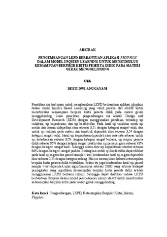 DESTI, DWI ANGGAYANI (2026) PENGEMBANGAN LKPD BERBANTUAN APLIKASI PHYPHOX DALAM MODEL INQUIRY LEARNING UNTUK MENSTIMULUS KEMAMPUAN BERPIKIR KRITIS PESERTA DIDIK PADA MATERI GERAK MENGGELINDING. FAKULTAS KEGURUAN DAN ILMU PENDIDIKAN, UNIVERSITAS LAMPUNG.
