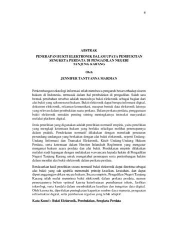 JENNIFER TANTYANNA , MARDIAN (2026) PENERAPAN BUKTI ELEKTRONIK DALAM UPAYA PEMBUKTIAN SENGKETA PERDATA DI PENGADILAN NEGERI TANJUNG KARANG. FAKULTAS HUKUM, UNIVERSITAS LAMPUNG.