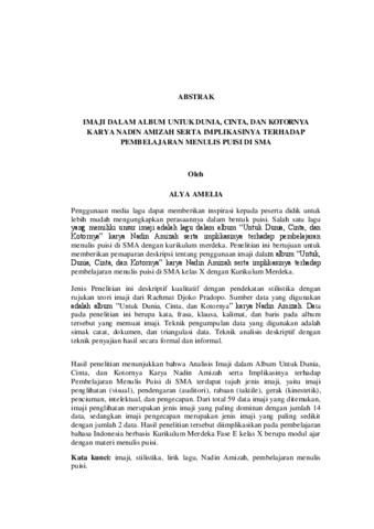 ALYA , AMELIA (2026) IMAJI DALAM ALBUM UNTUK DUNIA, CINTA, DAN KOTORNYA KARYA NADIN AMIZAH SERTA IMPLIKASINYA TERHADAP PEMBELAJARAN MENULIS PUISI DI SMA. FAKULTAS KEGURUAN DAN ILMU PENDIDIKAN , UNIVERSITAS LAMPUNG.